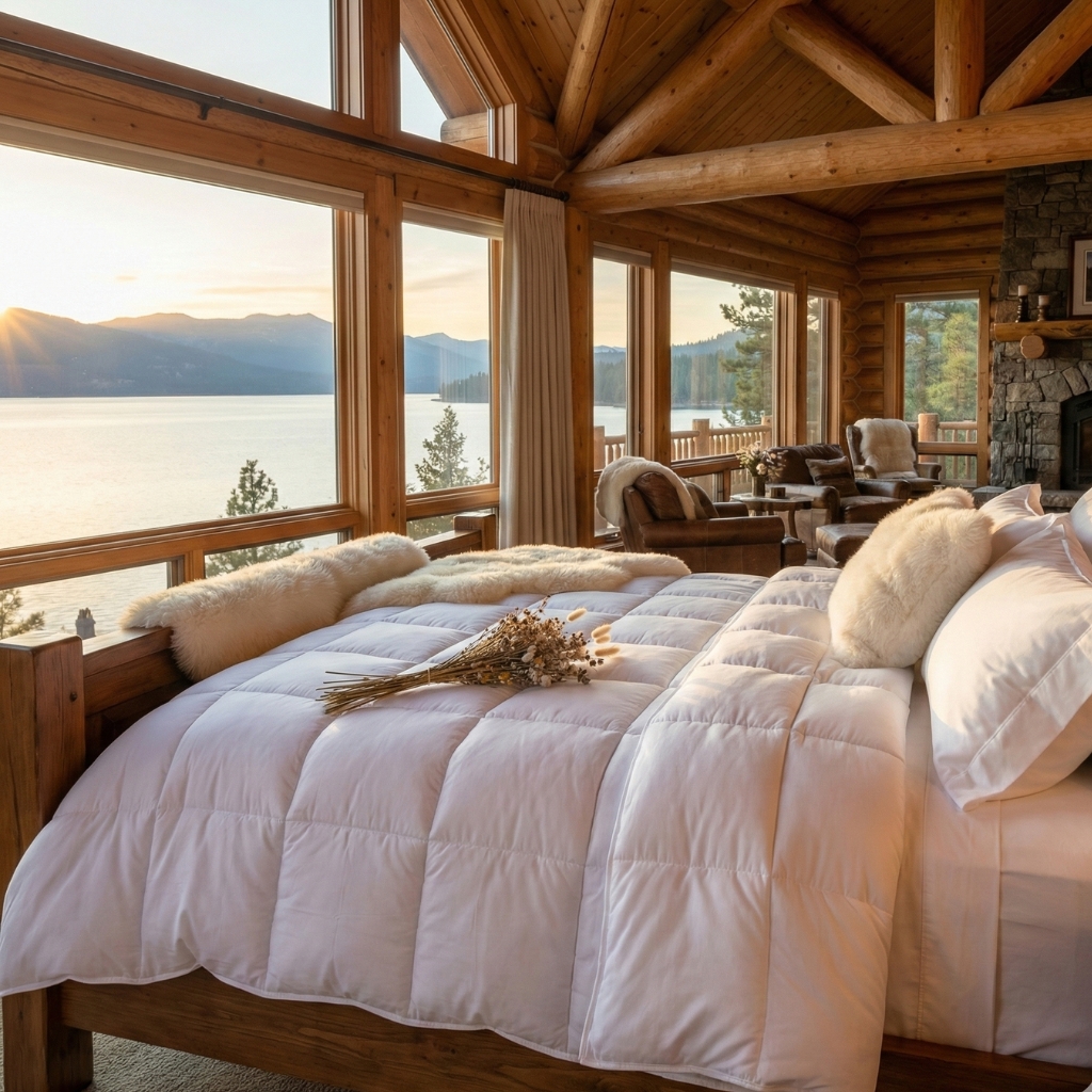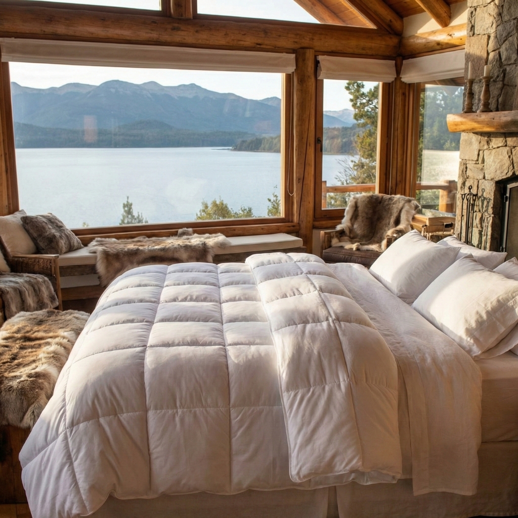 Transforma tu dormitorio en una suite de hotel 5 estrellas con nuestro exclusivo edredón Lujo Alpino. Diseñado para ofrecer el equilibrio perfecto entre elegancia y funcionalidad, este edredón invita al descanso profundo, evocando la calidez de una cabaña frente al lago.